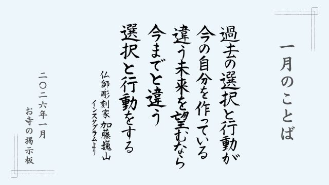 今月は仏師 加藤巍山さんの大好きな言葉を書かせていただきました。 あらゆるものが目まぐるしく変化する...